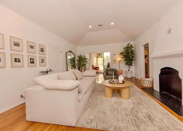 Las comodidades de la habitación en el hotel Chic 2Br Retreat In Weho Modern Comfort Walk To Chateau incluyen chimenea de piedra, internet de alta velocidad y climatizador.